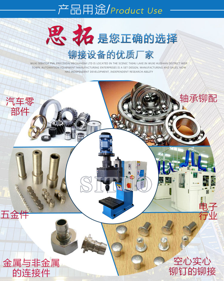 無錫思拓旋鉚機公司成立于2009年,公司領導更是下大成本采購多臺高端加工設備,用來加工氣動旋鉚機、液壓旋鉚機、還有伺服旋鉚機,進口的加工中心,超大龍門式機床,多臺數控車床和加工中心,檢測設備齊全,檢驗要要嚴格,所以才有那么多的客戶選擇無錫思拓旋鉚機,建立長期合作關系,并介紹多家客戶。